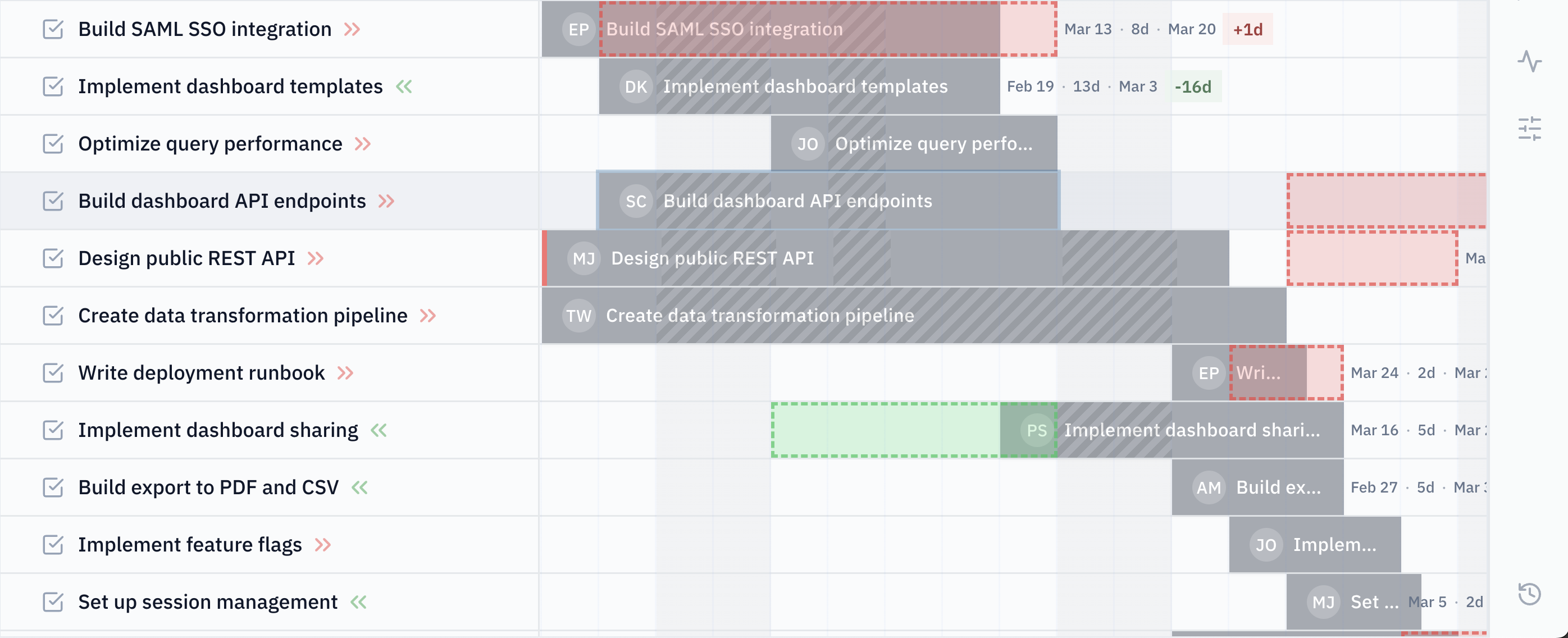 | Continuous recomputation The plan recomputes automatically when scope, availability, or priorities change. | ||||
